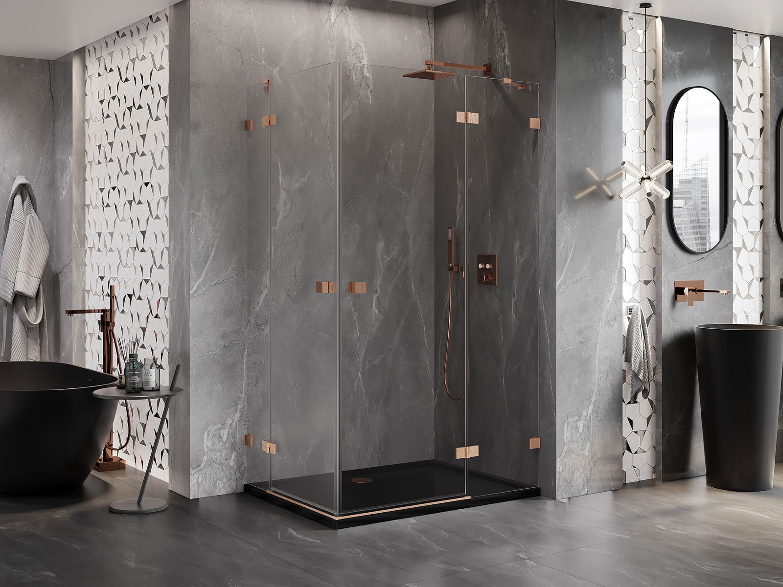 Mexen Lunar Duo cabine de douche pivotante droite 115 x 105 cm, transparente, cuivre brossé - 834-115P-105L-65-00