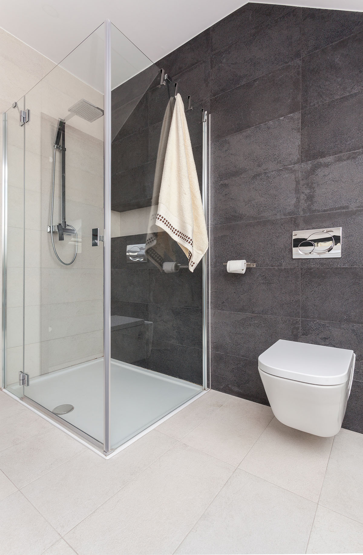 - cabines de douche murales - placées contre un mur de la salle de bain. Cependant, une seule paroi est nécessaire. Elles prennent beaucoup plus de place que les cabines d'angle typiques, car elles empiètent largement sur l'espace de la salle de bain. Il existe de nombreuses formes différentes disponibles sur le marché, y compris les cabines walk-in.